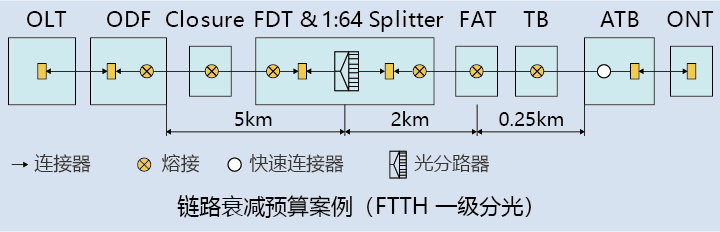 ODN链路总损耗主要包括两个部分:光缆本身的传输损耗以及ODN器件造成的插入损耗。