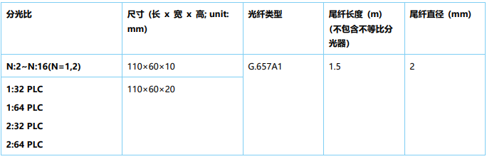 分光比: N:2~N:64(N=1、2)产品齐全;